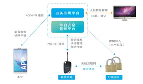 3) 智能鑰匙,無源掛鎖內(nèi)置金融等級(jí)安全芯片,密鑰認(rèn)證開鎖,杜絕誤開、重開問題及盜配問題